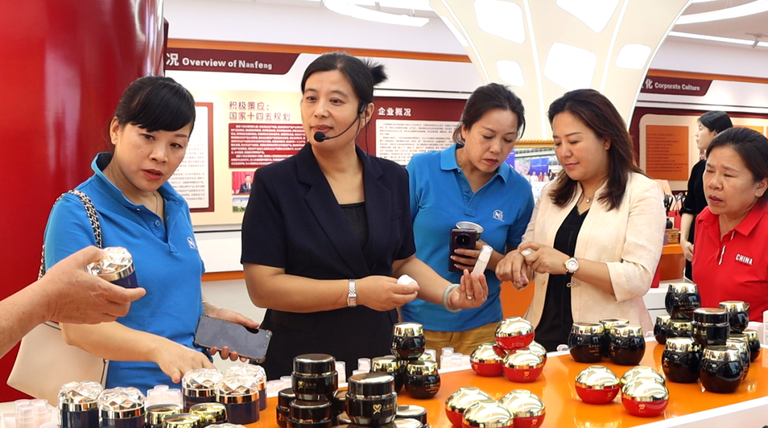 在聚福堂展厅,总经理赵群女士向姐妹们分享创业历程:从扎根农业的初心,到围绕女性消费需求优化产品,每一步都融入女企业家的细腻与韧性。 随后,走进聚福堂二期吉天下美业智造基地。看着现代化的美妆生产线,总经理赵群女士坦言:“从农业到美妆,核心是对‘品质’的坚守,这是我们做实业的共识。”依托当地资源优势,拓展产业边界,打造多元化发展格局。